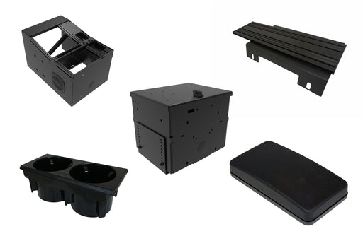 A standard automotive console is built for everyday storage and comfort, while a truck console or fleet vehicle console is often customized to hold specialized equipment like communication devices, lighting controls, and laptop mounts. Our consoles are made with rugged materials to handle heavy-duty use.