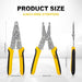 - All-in-One Wire Stripper & Crimper Tool: Combines wire stripping, cutting, crimping insulated & non-insulated terminals, clamping, and even small bolt or screw cutting—one tool for most electrical tasks